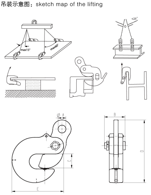 ★用途:适用于钢板水平吊装、竖直吊装和型钢的翻转。