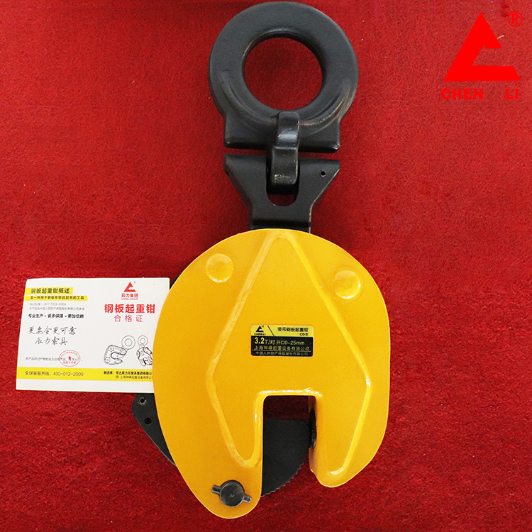 CD型竖吊钢板起重钳吊环可以实现水平180°、前后180°所有角度都可以实现,可以从上图吊环上看的出来,这一点是区别于CDH型的吊环。